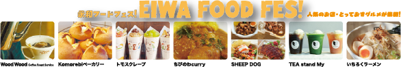 ・焼き鳥・焼きとうもろこし・フランクフルト・餃子・ポップコーン・ドリンク(お茶(麦茶・緑茶)、コーラ、オレンジジュース、カルピス、ジンジャーエール)