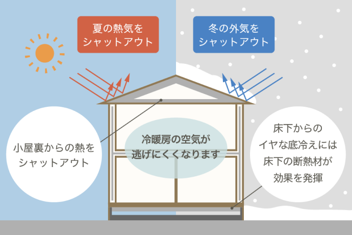 永和住宅ではZEH基準を上回る断熱等級6の断熱性能を標準仕様としています。